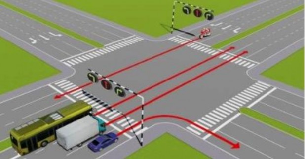Theo hướng mũi tên, thứ tự các xe đi như thế nào là đúng quy tắc giao thông?