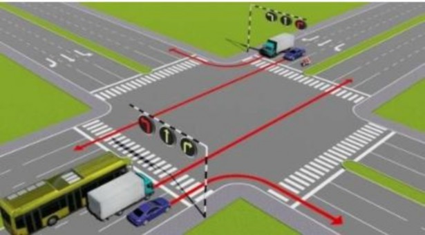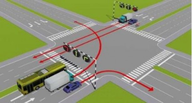 Theo hướng mũi tên, thứ tự các xe đi như thế nào là đúng quy tắc giao thông?