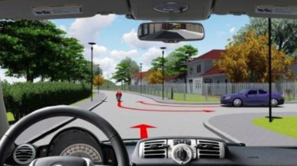 Các xe đi theo hướng mũi tên, những xe nào vi phạm quy tắc giao thông?